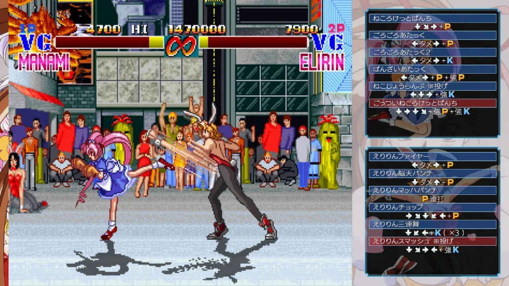 The other star is “Advanced Variable Geo”. With its fresh and bold concept of heroines from the restaurant industry battling in a fighting tournament for a legendary prime location, the setting still feels innovative today. The story mode, filled with rich visuals and animations, packs the energy of ’90s anime into one intense experience. Most notably, the fighting game mechanics are highly polished. Features like command guides for special moves and single-button inputs for super moves make the game approachable even for newcomers. This combination of improved controls and visual enjoyment explains why this classic continues to shine across generations.