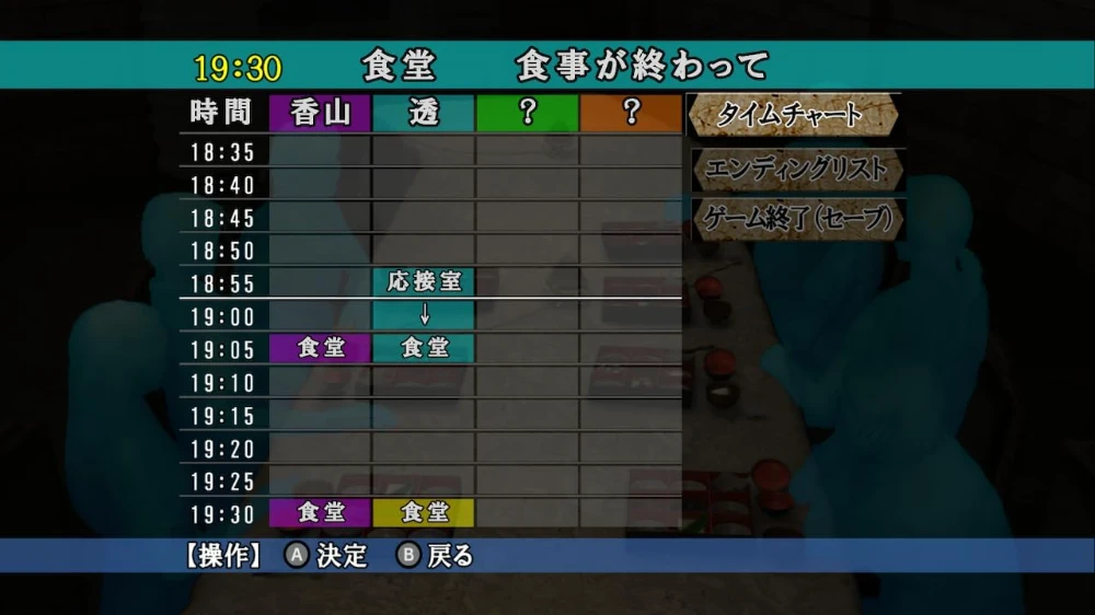 The biggest feature of this work is the multiple-protagonist system, a first for the series. You progress through the story by switching between four playable characters via a time chart divided into five-minute intervals. Even within the same timeframe, the scenery changes if the perspective shifts, and one person's choice can influence another's development. This structure demands multi-dimensional thinking rather than linear deduction. The sensation of reading while checking “Where was he at that time?” is like walking around an actual crime scene. It is closer to an experience of “unraveling” the story rather than just “reading” it.
