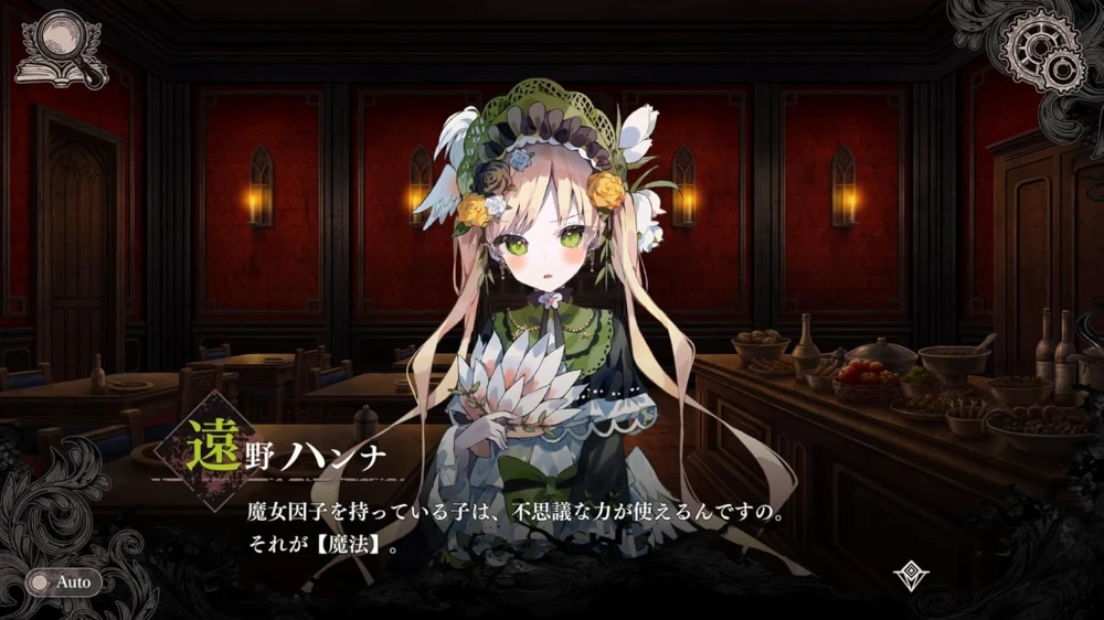 Triggered by the incident, the ”Witch Trial” system—the core of this game—begins. This is a cruel place of judgment where the culprit, the witch to be executed, must be chosen from among the girls. Players must listen to the girls' testimonies and organize the evidence gathered during the adventure (ADV) parts to see through who is lying. However, it isn't that simple. Each girl possesses unique magic, and since these abilities can be involved in the tricks of the crime, there are many conclusions that cannot be reached through common-sense reasoning alone. The process of reading between the lines of testimonies, piecing together the situation, and pursuing every doubt creates a level of tension that makes the player feel as if they have truly become a judge.